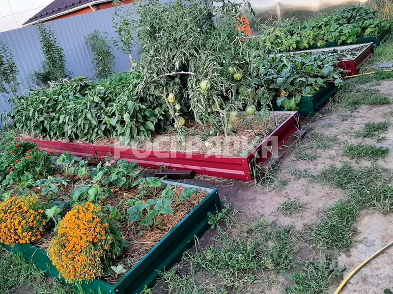 Грядки изготовлены из оцинкованного металла с полимерным покрытием толщиной 0,5 мм. Панели усилены 8 ребрами жесткости. Планка-стяжка через каждый 1 метр обеспечивает сохранность конструкции на долгие годы. Благодаря уникальной технологии, срок службы наших грядок составляет более 10 лет.
